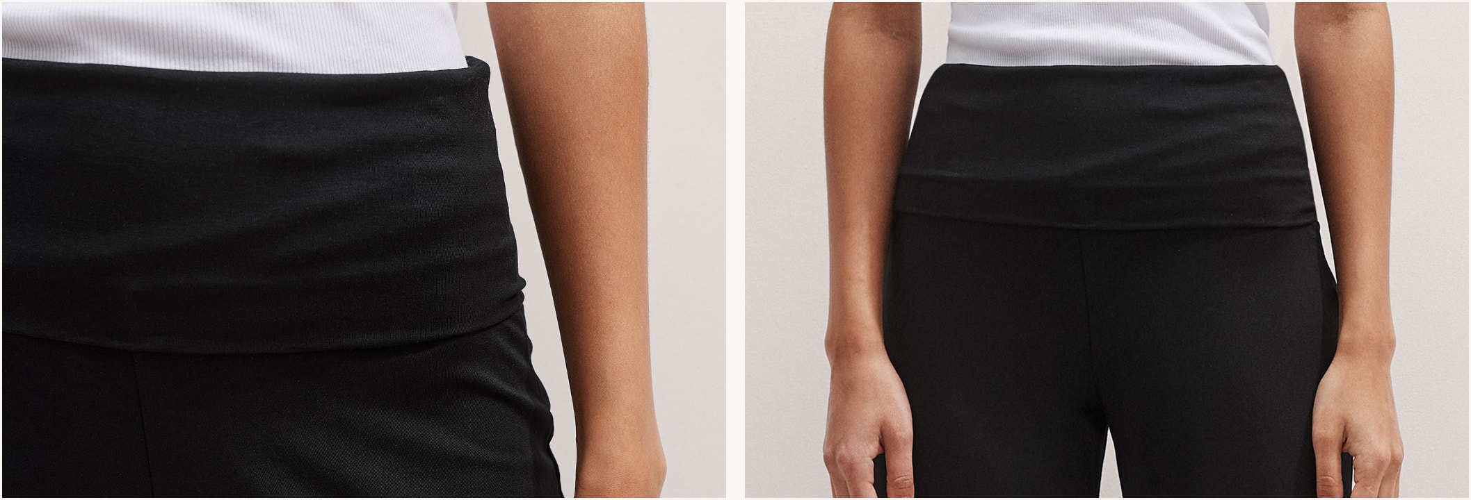 Countering the potential issue of an awkwardly high waist, the roll-top waistband is super stretchy and adaptable, allowing you to create the rise that feels most comfortable or flattering, whether it's low, mid, or high.