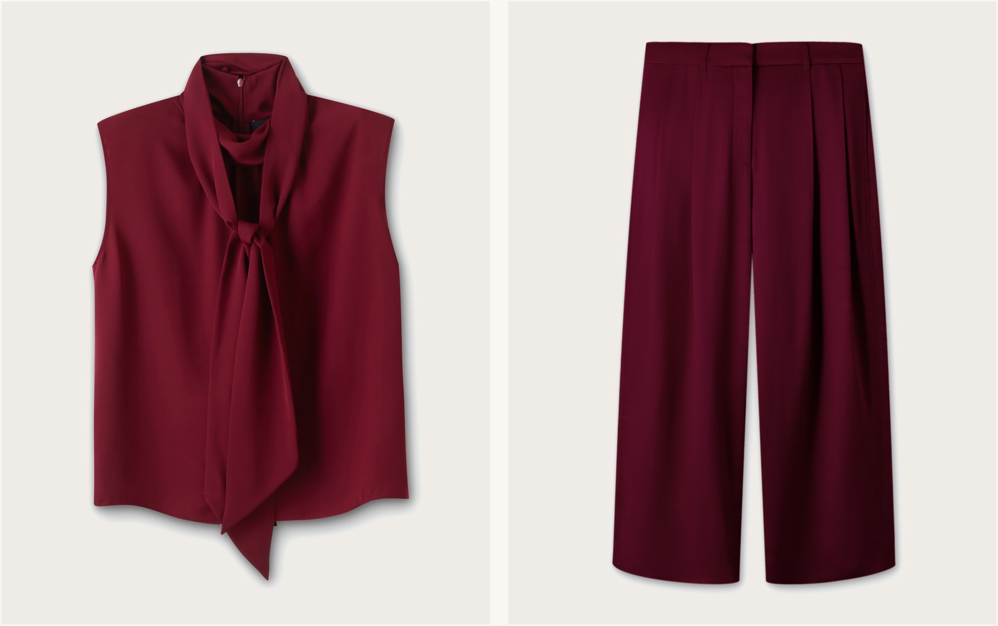 For head-to-toe color that has a suitably festive feel to match the season, look to our Deep Ruby Red pieces. Our Sleeveless Top falls to a loose-fitting drape for comfort, and is equipped with a matching scarf for an elevated finish. Or opt for a pop of Jewel Blue with our Sheer Sleeve Blouse.