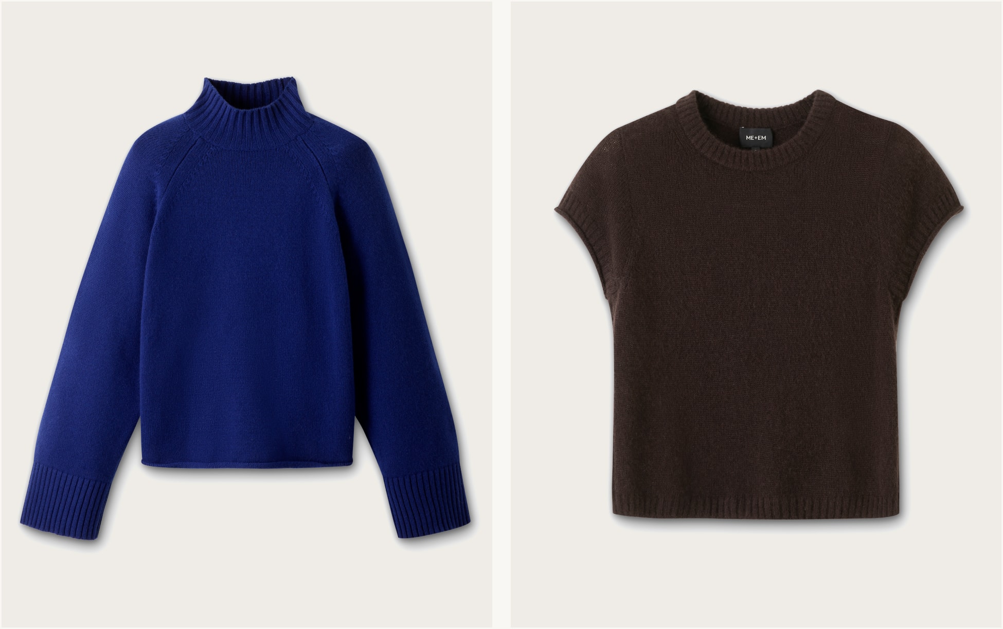For something soft and just the right amount of festive, look to a tactile piece like our Fair Isle Knit + Snood that’s knitted from an alpaca and merino wool blend yarn, or choose a modern color-pop style in our Relaxed Raglan Sweater or the Sunday Sweater + Snood in True Scarlet Red.