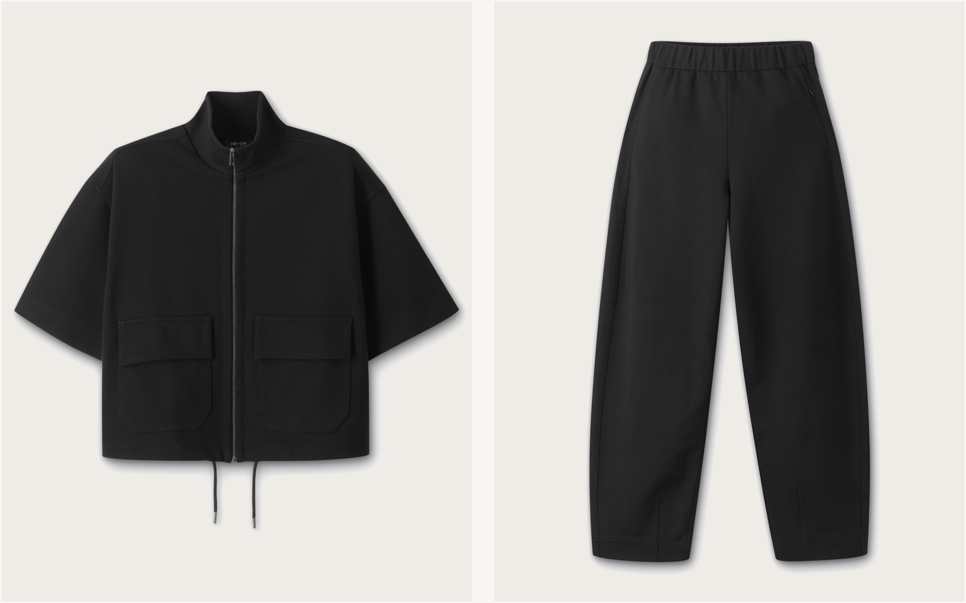 Finding the perfect balance between relaxed and refined, our Travel Jacket is made from ponte-jersey tailoring fabric that holds its shape no matter how long the journey, or the dinner table debate. The drawstring tie at the hem allows for a more slouchy finish. Choose either the coordinating Barrel-Leg or Wide-Leg Pant to build a cohesive head-to-toe look.