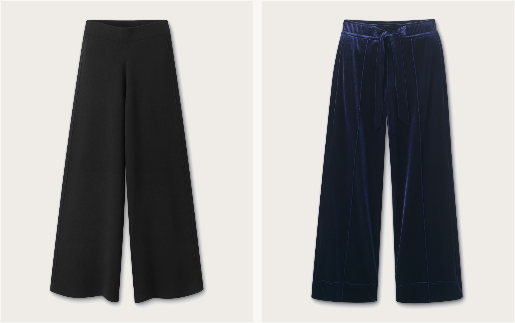 Polished enough for the table, comfortable enough for the couch, our Evening Palazzo Pant unites the relaxed style of our original pair with an elevated note, crafted from a blend of extrafine merino wool and silk for a soft, slinky finish, making it the ideal counterpart to our blouses.